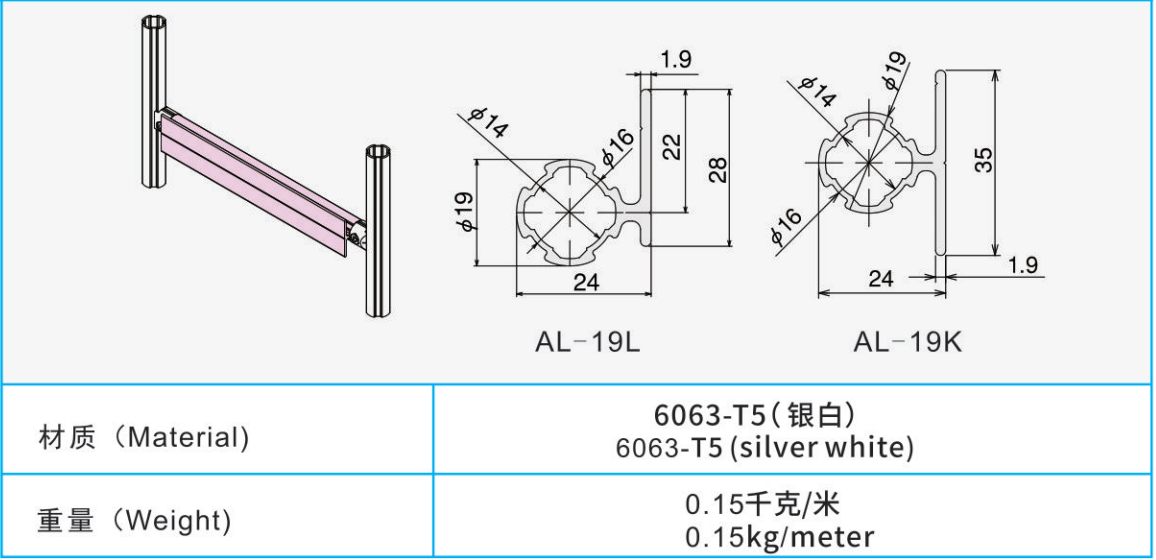 材質:6063-T5(銀白)