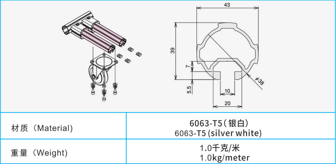 材質(zhì):6063-T5(銀白)
